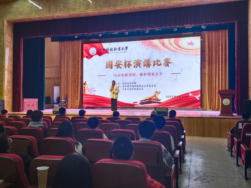 为进一步激发我校学子爱国主义热情和维护国家安全的责任感和使命感,在2022年4月15日第七个全民国家安全教育日来临之际,校党委宣传部主办,校团委,汽车工程学院团总支承办“国安杯”大学生国家安全教育演讲比赛在图书馆三楼多媒体厅盛大举行。