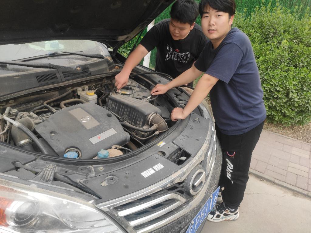 2022年4月25日,汽车工程学院2021级汽车检测与维修学生徐乐乐和董奇在去餐厅就餐的路上,恰遇医学院一名老师的车打开机舱盖,停在路边,两人主动上前询问得知,原来是车辆长时间停放无法起动,经两人检查得知了故障,两位同学一边劝老师别急,一边找来了修车工具,很快“毛病”就被修理好了,同学们还对车辆的刹车、蓄电池、发动机、线路老化等项目检查,给出了合理的建议。