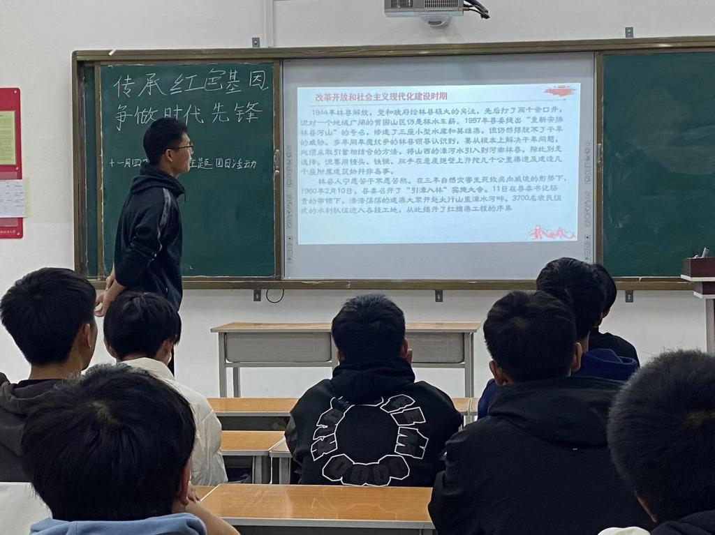 为了加强学生思想,武装学生精神,汽车工程学院于2022年11月4日晚开展“传承红色基因,争做时代先锋”的主题班会。本次班会通过各班团支书组织观看视频、PPT和讲解学习的方式让全院学生进一步领会红旗渠精神,提高传承和弘扬中华民族伟大精神的自觉性。