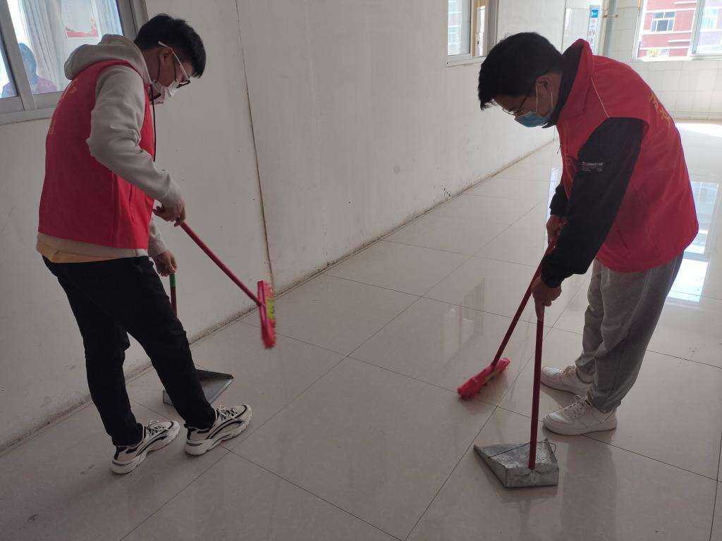 活动正式开始前,大家都穿上了志愿者红色马甲,并在教学楼中间合影留念。随后,同学们分组进入到教学楼的教室,有的同学主动将讲台收拾干净,为老师提供一个清洁的教学平台。有的同学将教室的桌椅整理,并将桌子上的垃圾倒入垃圾桶内,使前来上课的同学能够有一个整洁的学习环境,还有的同学认真地把教室的门窗擦洗干净。